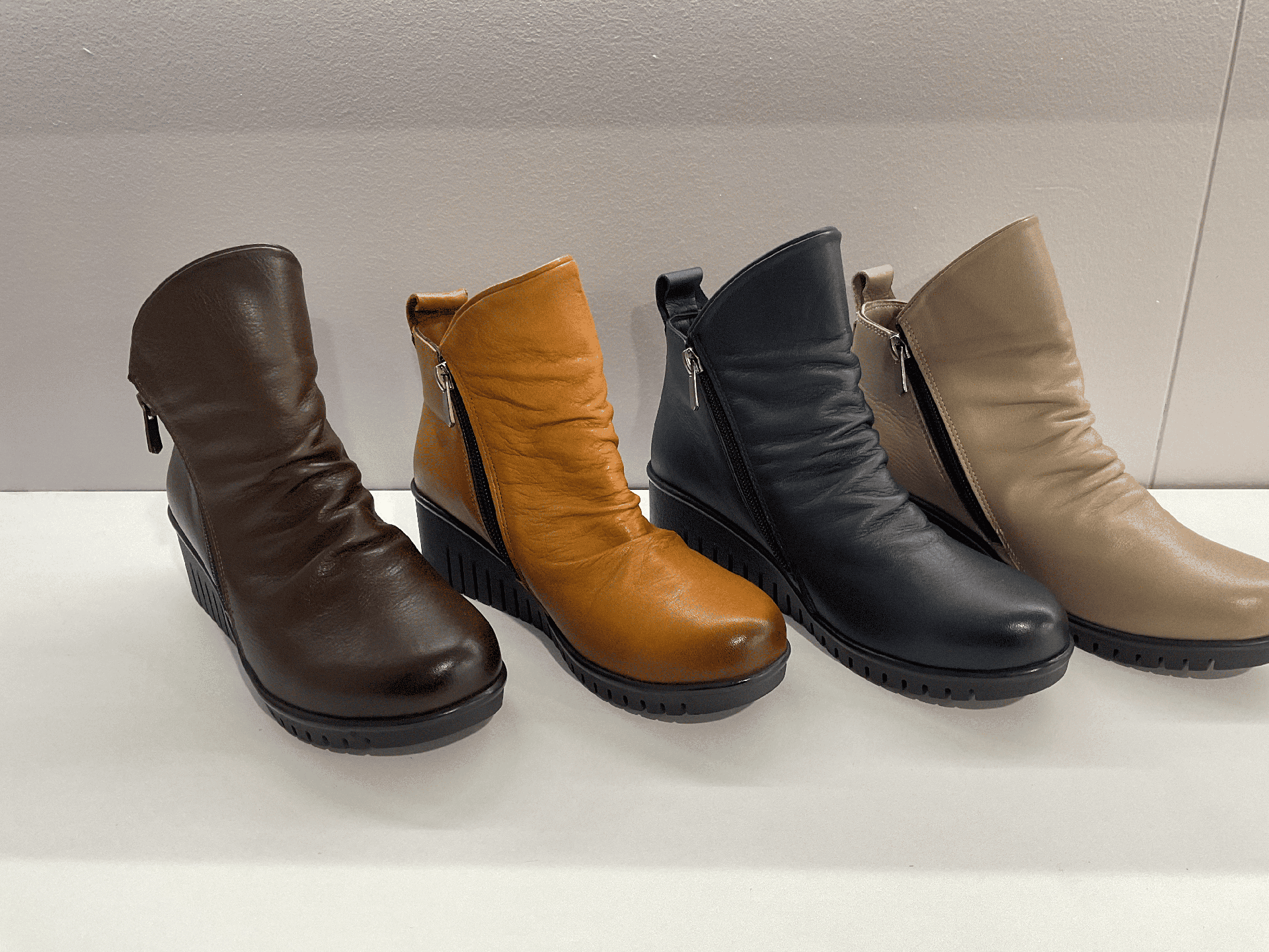 Pour la gamme automne-hiver, vous retrouverez des chaussures montantes, des derbies, des richelieus, des babies, mais aussi les incontournables bottes et boots.